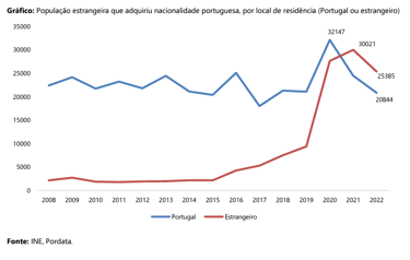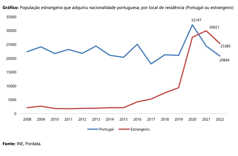 Um fato interessante que se destaca nos últimos anos é a crescente concessão de nacionalidade a cidadãos não residentes em Portugal. Em 2021 e 2022, mais de 50% das atribuições foram feitas a estrangeiros fora do território português, ilustrando como as raízes portuguesas se estendem muito além de suas fronteiras. Em 2022, por exemplo, das 46.229 nacionalidades concedidas, cerca de 37% foram destinadas a descendentes de judeus sefarditas portugueses, um grupo que tem recebido atenção especial graças a um marco legislativo significativo.